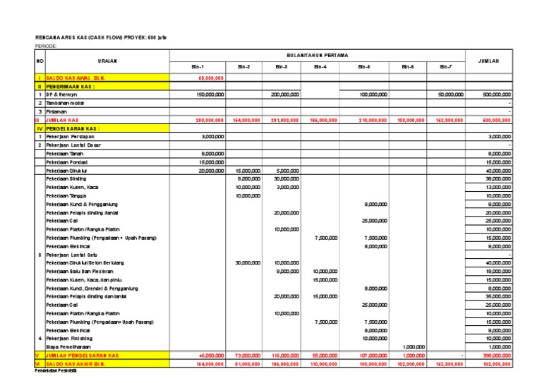 Menurut psak no.2 (2002 :5) arus kas adalah arus masuk dan arus keluar kas atau setara kas. Cashflow = progres rencana (%) x total rab. Sehingga tidak ada keterlambatan termin dari owner. Contoh cash flow proyek konstruksi xls medical, contoh cash flow proyek konstruksi xlsx, contoh cash flow proyek konstruksi xls to pdf, cont. Itulah yang dapat admin jelaskan terkait contoh laporan arus kas cash flow excel.